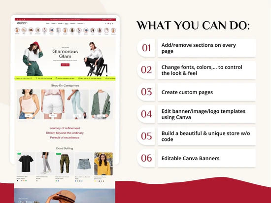 Embrace style and sophistication, allowing your brand's unique personality to shine through every aspect of your online store. Guccy ensures your store becomes a standout in the industry.